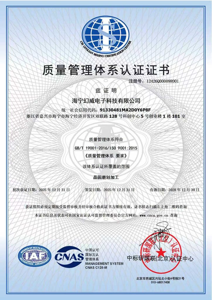 海宁幻威电子科技有限公司是一家专业从事集成电路后序加工与生产的企业,坐落在美丽的浙江海宁国家级科技企业孵化园区海宁科技创业中心,是一家集磨片、划片、分膜于一体的高科技企业。公司可以为客户提供晶圆来料磨、划、分完整的一站式加工服务!目前公司已建成超净生产车间,生产设备均为日本进口,公司现拥有日本DISCO磨片机,DISCO划片机,DISCO清洗机等众多先进设备,具备最新工艺的开发能力,注重管理,追求品质,产品良率远超同行水平。