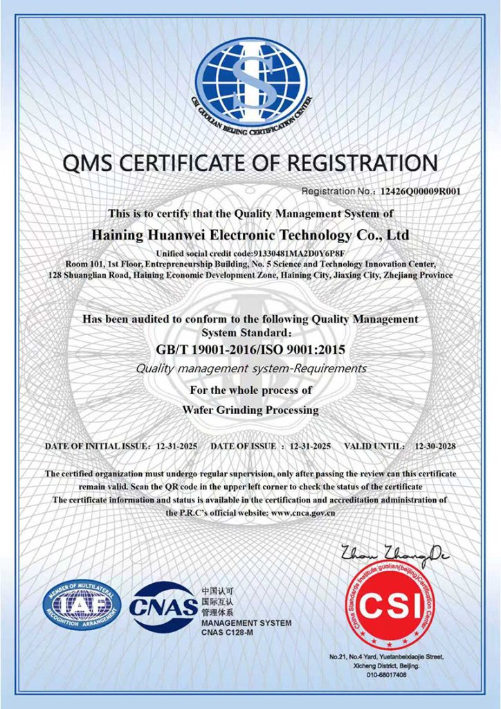 公司荣膺浙江省科学技术厅颁发的“浙江省科技型中小企业”,拥有6项技术发明专利,同时拥有一批资深的半导体集成电路专业人员及训练有素的技术工人,拥有完善的工艺技术管理体系,已解决多个磨划行业的技术性壁垒,在晶圆划片工艺上可做到零背崩深受用户好评。公司年磨划能力已达到30万片以上。竭诚欢迎各大厂商客户莅临参观,合作共赢!